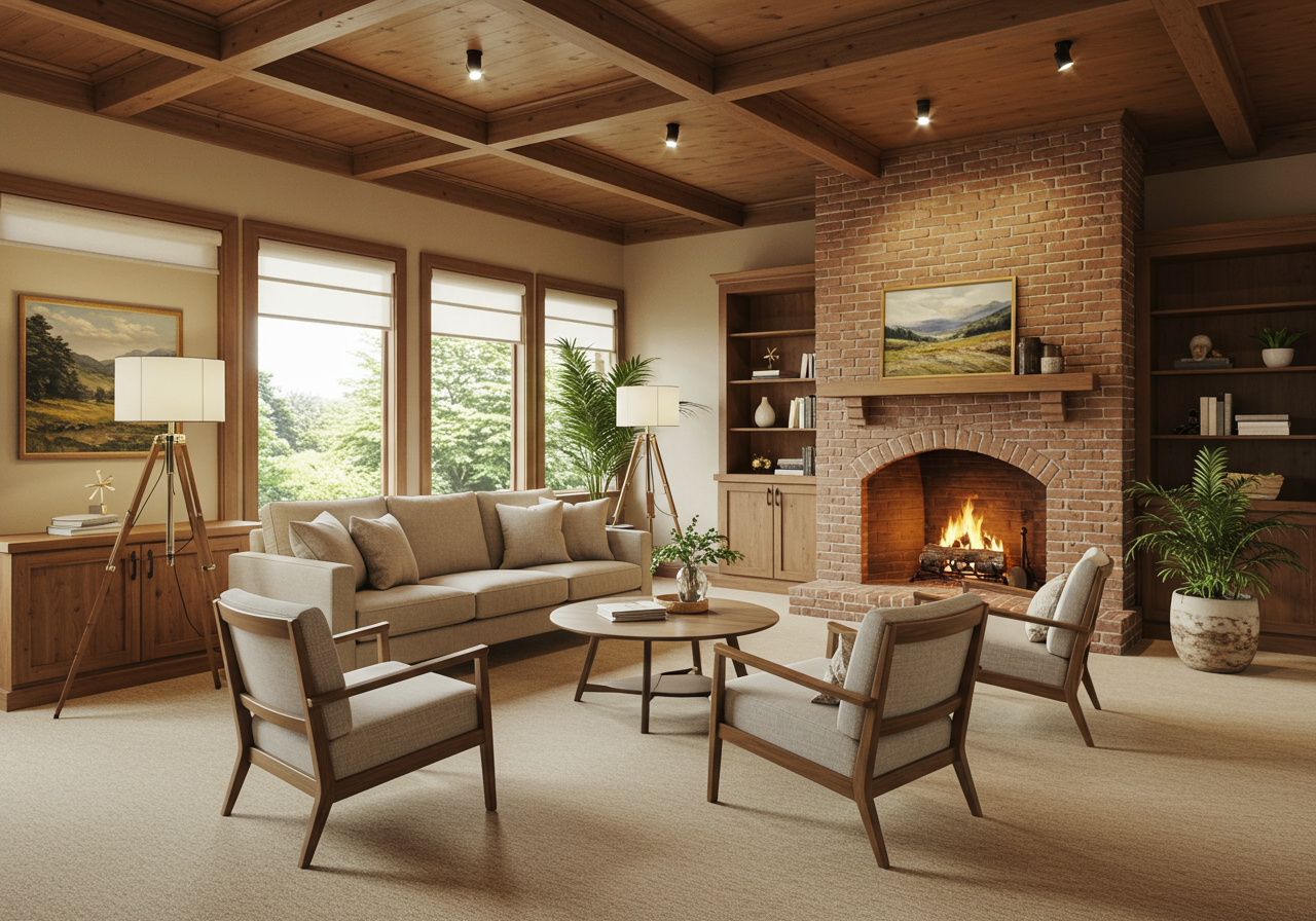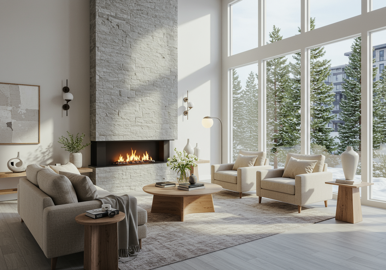 The living room should feel comfortable and open while showcasing a focal point like a fireplace or large window. Use furniture to create conversation areas without blocking natural pathways and avoid overcrowding with excess chairs or side tables. Use rugs to define the space, especially in open-concept layouts, and add tasteful textiles like throw pillows and blankets for a relaxed, polished look.